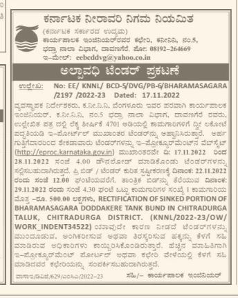 Bid: 29.11,2022 4.30 PM Total No. of Works 1 Amount of