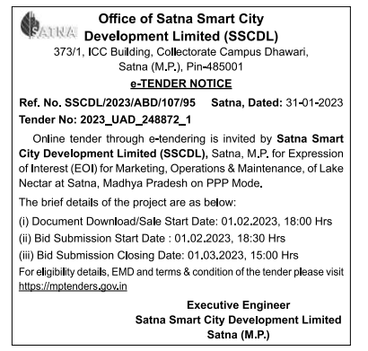 tender through e-tendering is invited by Satna Smart City Development Limited (SSCDL), Satna, M.P.
