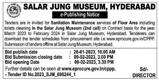 Tenders are in invited for Sanitation Maintenance services of Floor Area including toilets cleaning in the Salar Jung Museum (2nd call)