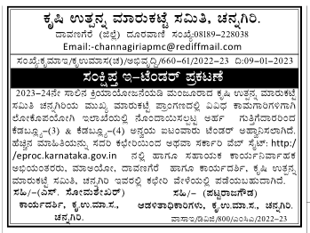 tenders are invited as per KW-(3) & KW-(4) from eligible contractors registered with Public Works Department for various works at Main Market Precinct, Channagiri, sanctioned under Action Plan 2023-24.