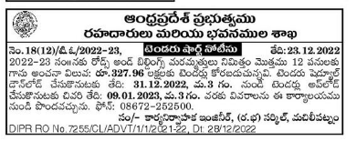 tenders are invited for a total of 12 works for the repair of roads and buildings