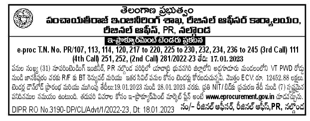 Tenders are invited for BT renewal and other civil works for RIF from Janakipuram.