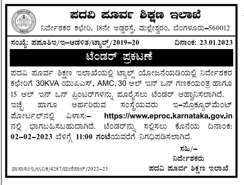 Tenders are invited for supply of 30KVA UPS, AMC, 30 All-in- One Computers and 15 All-in-One Printers