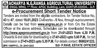 Tenders are invited from the eligible contractors, ACHARYA N.G.RANGA AGRICULTURAL UNIVERSITY