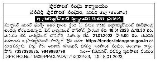 Tenders are invited on e-procurement platform for 10 works under Municipal General Funds/Other Grants.