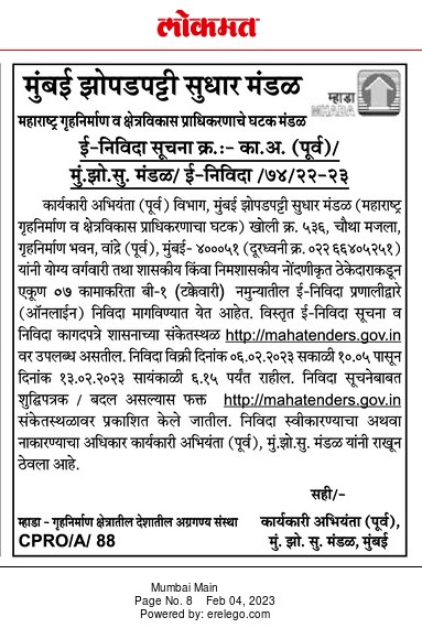 Tenders are invited through e-tendering system (online) in B-1 (percentage) pattern for a total of 07 works
