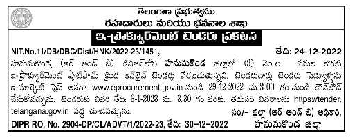 tenders are invited under the e-procurement platform for the works of Bendarudars tender schedules from e-market place i.e.
