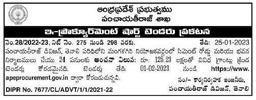 Tenders are invited under various grants for 24 works of Cement Road and Building Construction in Mangalagiri Constituency