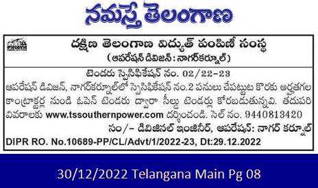 Operation Division, Nagar Kurnool Specification No. 2 Sealed tenders are sought through open tender from eligible contractors for undertaking the works.
