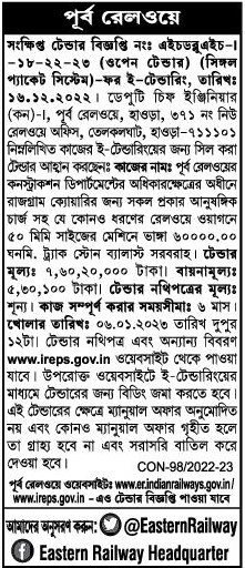 Tenders for All types of ancillary to Rajgram Quarry under the purview of Construction Department of Eastern Railway
