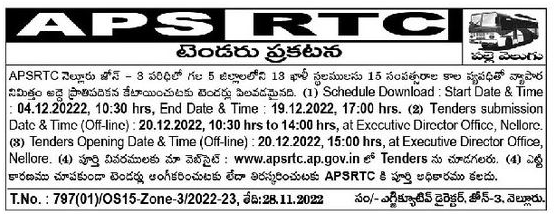 tenders for allotment of 13 vacant plots in 5 districts of Nellore Zone-3 on tenancy basis for commercial purposes with a tenure of 15 years.