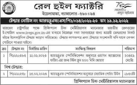 Tender Notice No.RWF/S/P1/014/2022-23 Dated 19.12.2022