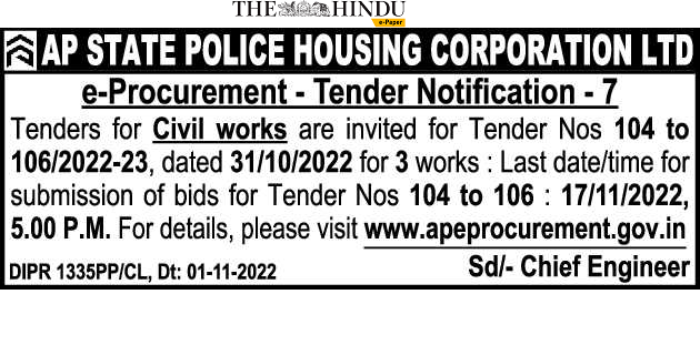 Tenders for Civil works in AP STATE POLICE HOUSING CORPORATION LTD