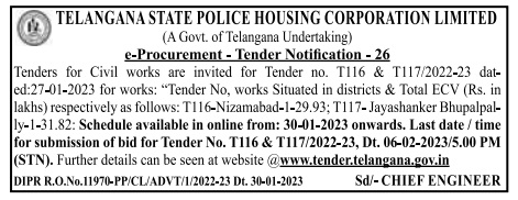 Tenders for Civil works in TELANGANA STATE POLICE HOUSING CORPORATION LIMITED