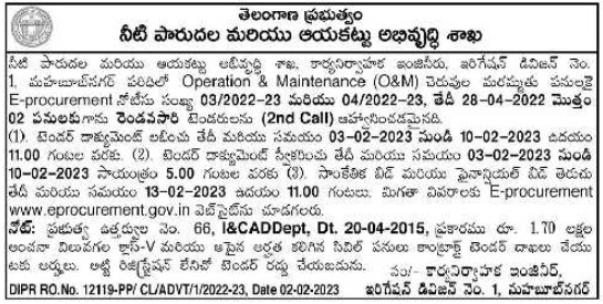 & Maintenance (O&M) pond repair work in Mahbubnagar area.