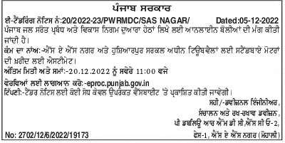E-Tendering Notice No:20/2022-23/PWRMDC/SAS NAGAR/