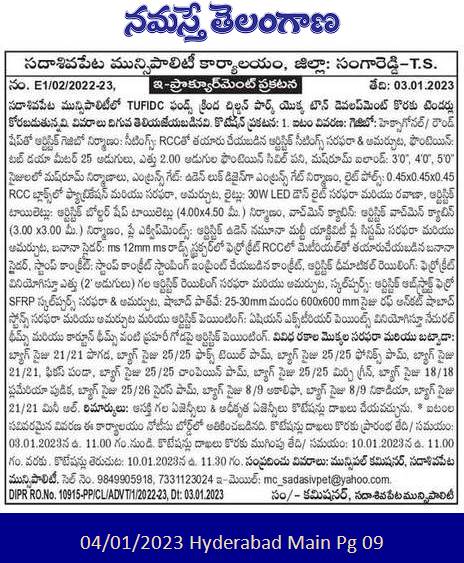 Tenders for Town Development of Children’s Park under TUFIDC Funds in Sadashivapet Municipality