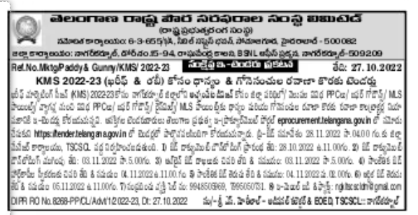 Tenders for Transportation of Grain & Gunny Bags for KMS 2022-23