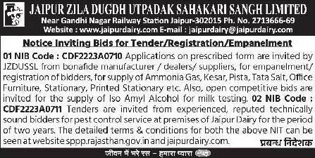 seen at website spop.rajasthan.gov.in and jaipurdairy.com. प्रबन्ध निदेशक