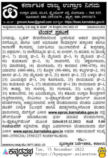 Piriyapatnam, 35) Kadur warehousing centers invited tenders
