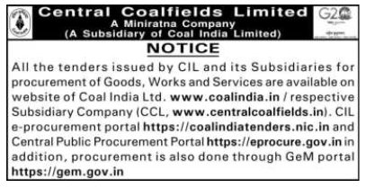 tenders issued by CIL and its Subsidiaries for procurement of Goods, Works and Services are available on website of Coal India Ltd.