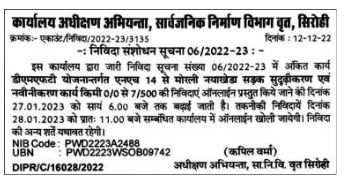 Tenders of km 0/0 to 7/500 of NH 14 to Morli Nayakheda Road Strengthening and Renovation work under DMFT scheme