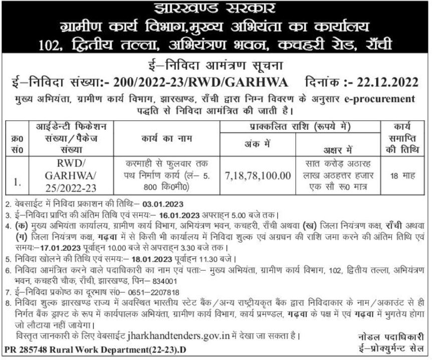 Tendre for Road construction work from Karamahi to Phulwar (length- 5.800 km)