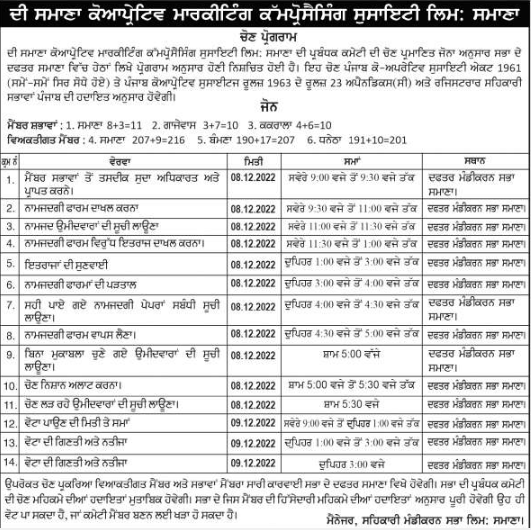 following program in the office of Samana as per the approved Zona. The election will be held as per the Punjab Co-operative Societies