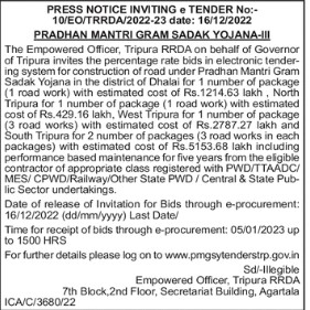 Sadak Yojana in the district of Dhalai for 1 number of package