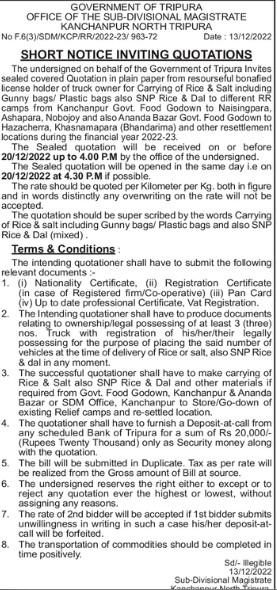 The undersigned on behalf of the Government of Tripura Invites
