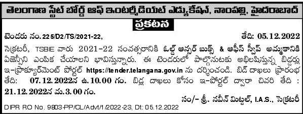 DIPR RO No. 9803PP/CL/Advt/1 /2022-23, Dt: 05.12.2022