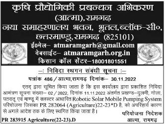 tender :- Letter No. 486 / Atma, Ramgarh dated 30.11.2022