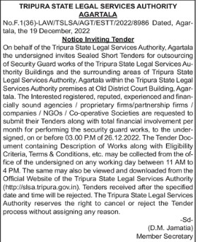 of Security Guard works of the Tripura State Legal Services Au-