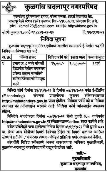 E-tendering for the following works in Kulgaon Badlapur Municipal
